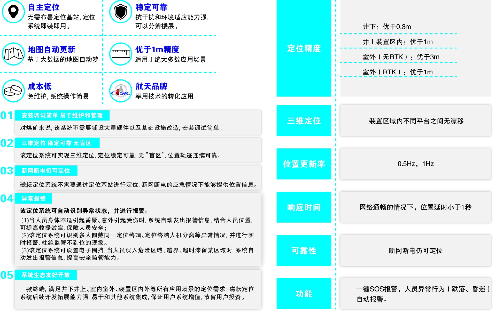 產(chǎn)品簡介:選煤廠主廠房、篩分破碎車間等建筑內(nèi)的大型設(shè)備立體空間結(jié)構(gòu)復(fù)雜、遮擋嚴(yán)重,眾多電氣設(shè)備特別是變頻設(shè)備存在大量諧波及電磁干擾,現(xiàn)有定位技術(shù)不適用于選煤廠的復(fù)雜環(huán)境。針對選煤廠的復(fù)雜環(huán)境特點(diǎn),我公司首次研發(fā)了基于空間固有磁場特征的“磁耘”多源融合智能精確定位系統(tǒng)。該系統(tǒng)通過無源被動的自主導(dǎo)航定位,為選煤廠復(fù)雜環(huán)境提供了一種穩(wěn)定、高效且抗干擾的全新人員精準(zhǔn)定位解決方案?!按旁拧倍嘣慈诤隙ㄎ幌到y(tǒng)是基于地磁技術(shù)的人員定位系統(tǒng),其基本原理是利用不同位置的固有磁場差異來確定人員位置信息,同時還融合了慣導(dǎo)、藍(lán)牙、北斗等定位技術(shù),實(shí)現(xiàn)了室內(nèi)外一體化定位。