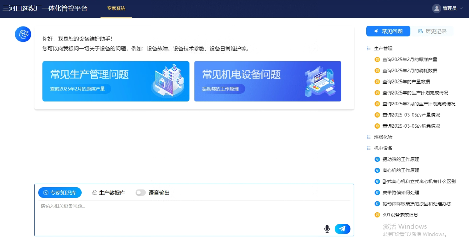 產(chǎn)品簡介:該平臺(tái)基于基礎(chǔ)自動(dòng)化、智能控制、智能檢測等業(yè)務(wù),將選煤生產(chǎn)、運(yùn)營、管理的各子系統(tǒng)集成整合,通過對(duì)生產(chǎn)全過程關(guān)鍵數(shù)據(jù)的提取、分析,實(shí)現(xiàn)對(duì)產(chǎn)品數(shù)質(zhì)量、生產(chǎn)組織、經(jīng)營成本等管理信息的智能決策,達(dá)到諸如設(shè)備智能運(yùn)維、狀態(tài)智能監(jiān)測、過程智能控制、參數(shù)智能設(shè)定、管理智能精細(xì)、決策智能調(diào)節(jié)等目標(biāo),進(jìn)而為選煤廠的安全高效生產(chǎn)保駕護(hù)航。行業(yè)率先提出構(gòu)建行業(yè)垂直領(lǐng)域大模型,基于選煤廠終端生態(tài),通過文字對(duì)話、語音交互等方式問答式檢索專業(yè)知識(shí),統(tǒng)計(jì)生產(chǎn)狀態(tài),分析設(shè)備問題故障,實(shí)現(xiàn)智能化人機(jī)交互新模式。